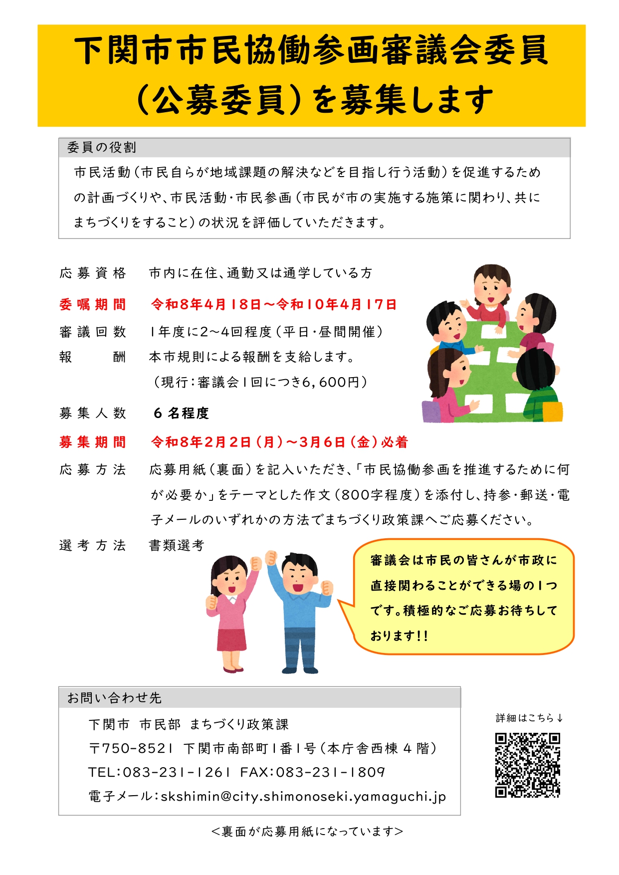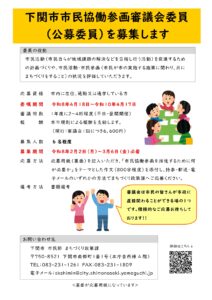 下関市市民協働参画審議会委員を募集します2026.01.29